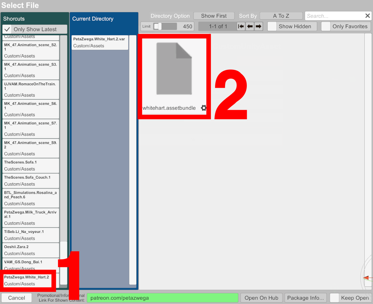 Var 파일을 받았다면 그 파일을 VaM이 설치된 곳의 폴더 안에 VaM\Custom\AddonPackages에 넣자. 인게임에서 받는다면 경로를 정할 필요는 없다. 그리고 인게임으로 들어가자. 받은 파일이 씬을 같이 포함해서 바로 확인 할 수 있게 해주는 제작자도 있겠지만, 우리는 우리가 필요할때 배경을 가지고 와야하기 때문에 인게임에서 CustomAssets을 눌러서 추가를 해주자.
